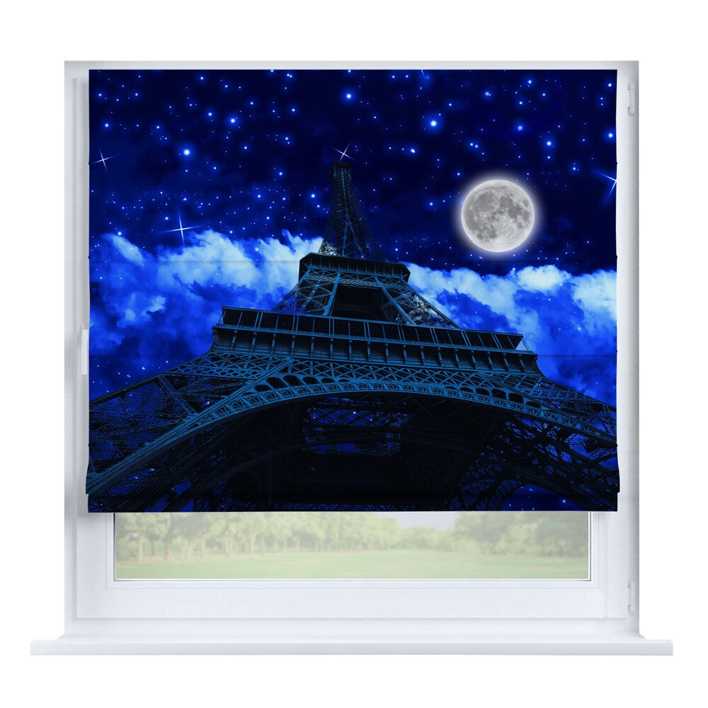 Римская штора для проёма «Вечерний город», карниз верёвочный